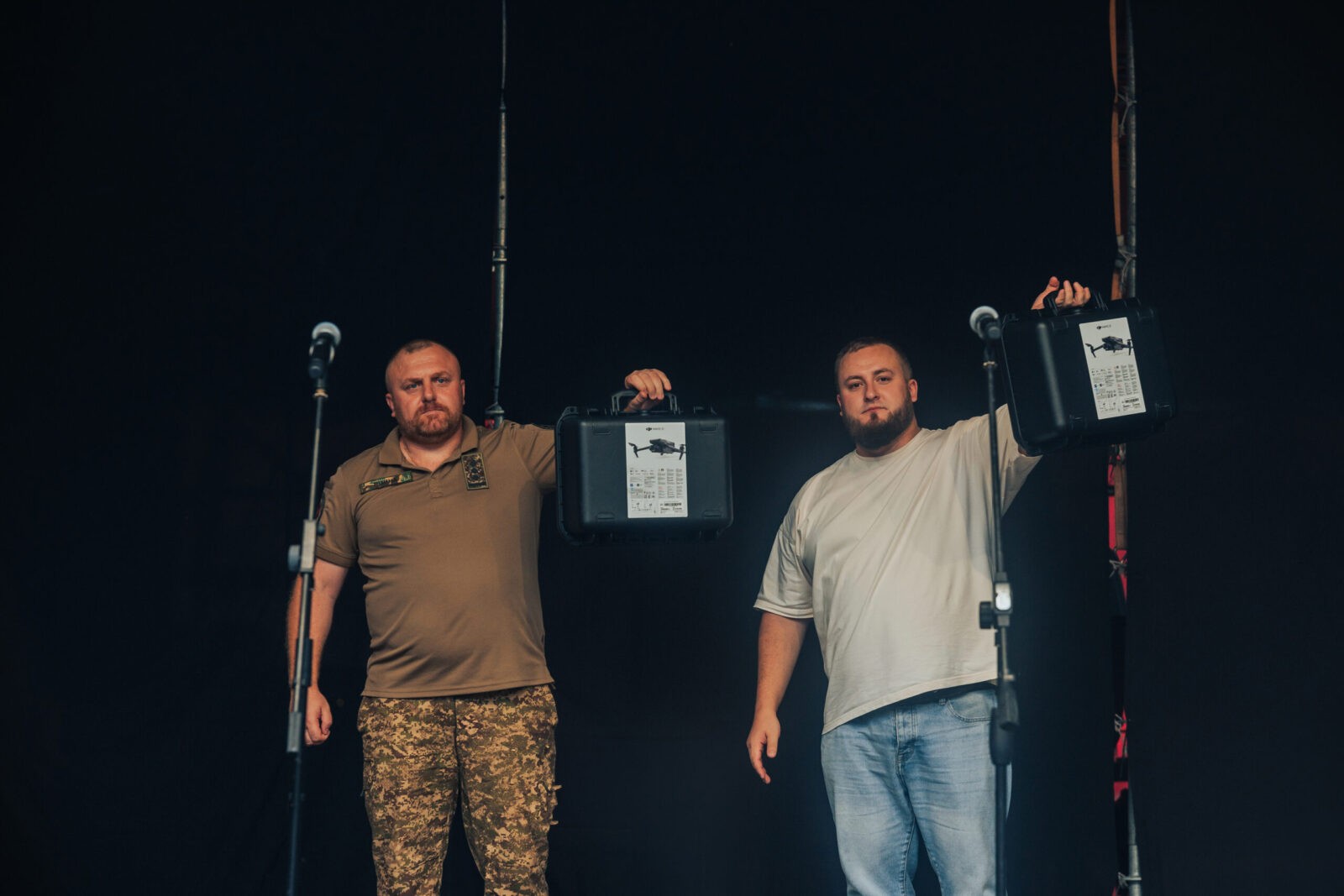 Гучними оваціями вінничани подякували за захист та мирне небо над Вінницею незламним воїнам бригади «Червона калина» під час передачі дронів, що відбулась у суботу перед початком концерту легендарної «Піккардійської Терції» просто неба у музеї-садибі Пирогова.