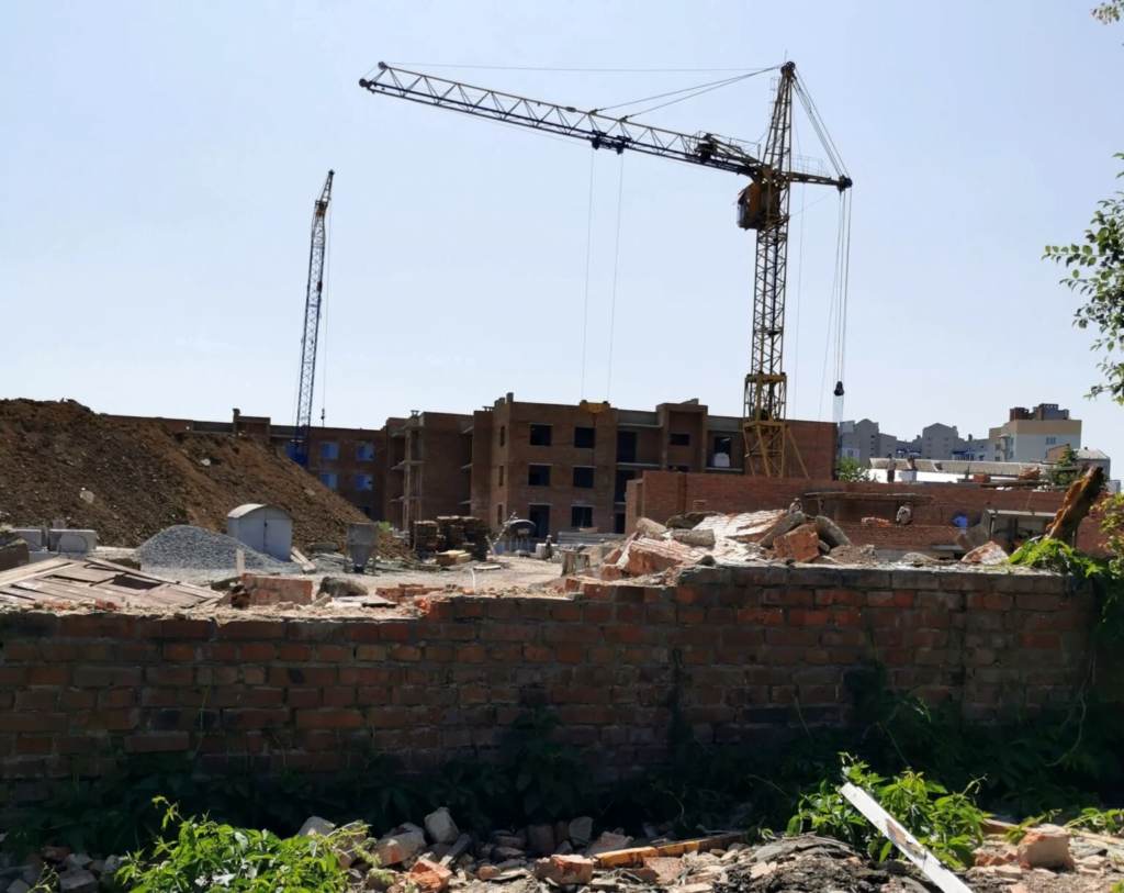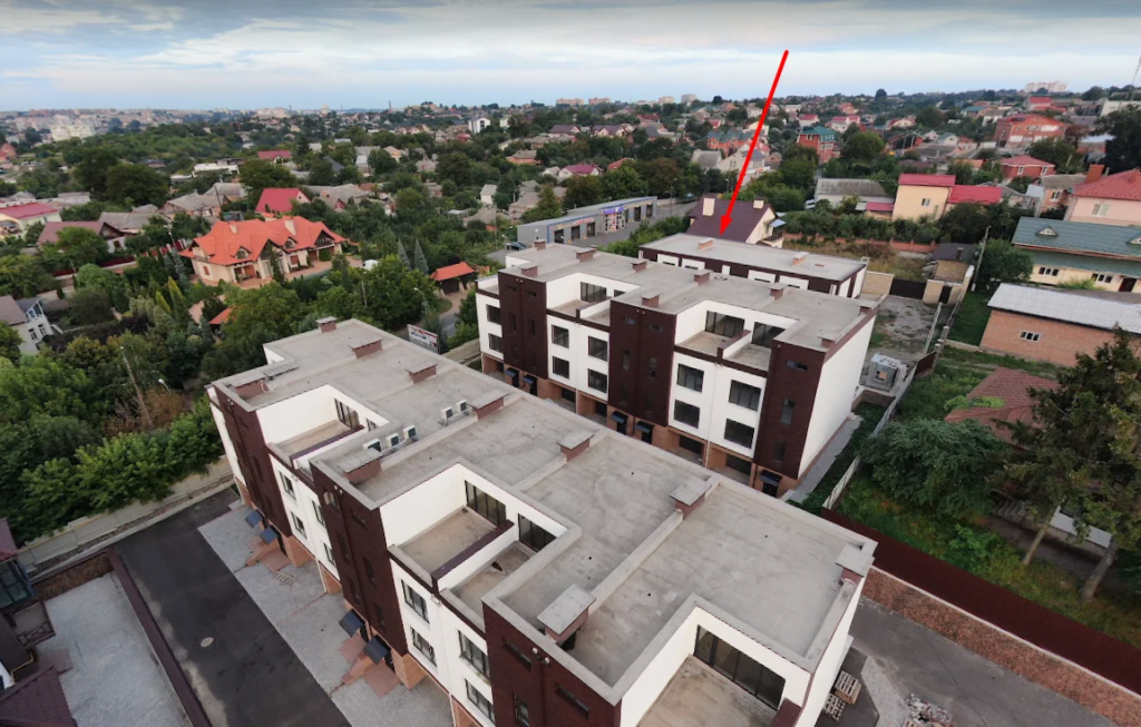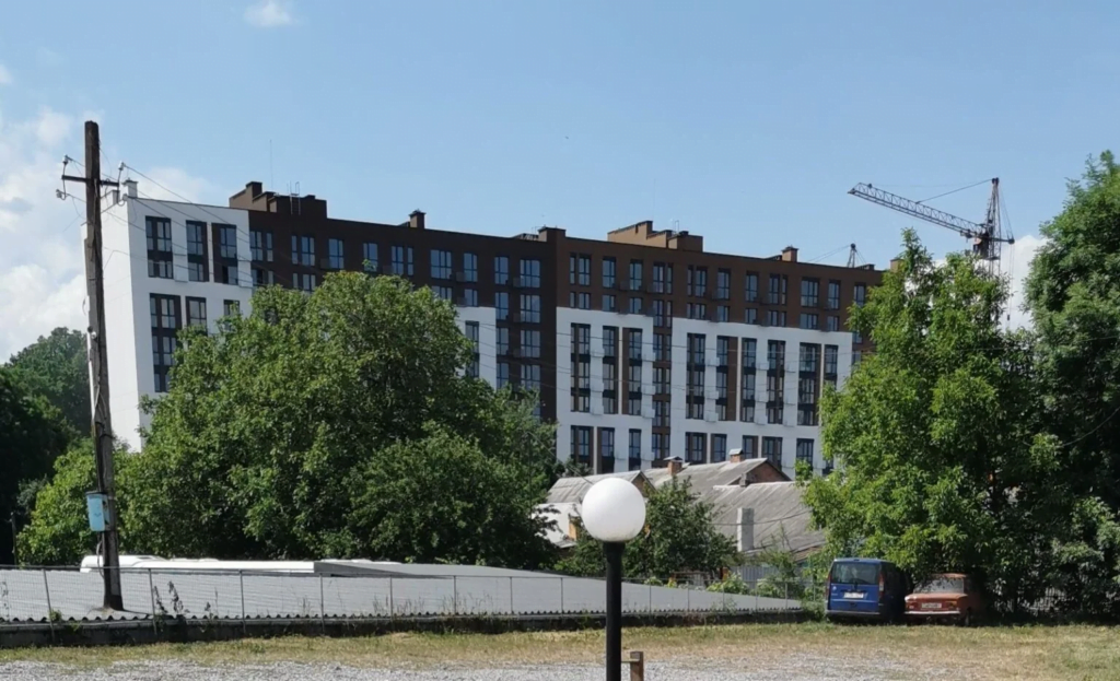 Забудовник ТОВ “Моноліт Інвестбуд”. Одна з ділянок, де будується житловий комплекс має цільове призначення “01.03 Для ведення особистого селянського господарства”. Тобто, на цій ділянці будівництво заборонено, але частини двох будинків знаходяться на цій землі.