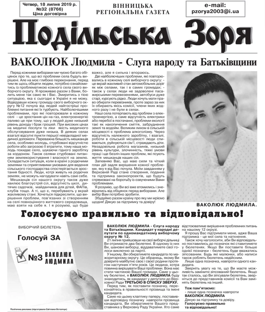 У політику Людмила Ваколюк прийшла через партію «Батьківщина», де обіймала посади в міському і обласному бюро, а також очолювала районну організацію у Вінниці. Як висуванка «Батьківщини», у 2019 році навіть балотувалася до Верховної Ради в окрузі №19 на Вінниччині, але до парламенту не пройшла. Зате у грудні того ж року стала фігуранткою Єдиного державного реєстру осіб, які вчинили корупційні правопорушення. Приводом стала банальна, але принципова відмова надати інформацію на запит НАЗК. Чотири рази не з’являлася до суду, демонструючи, м’яко кажучи, «особливе ставлення» до законів. Результат — штраф у 1700 гривень та офіційний статус корупціонерки.