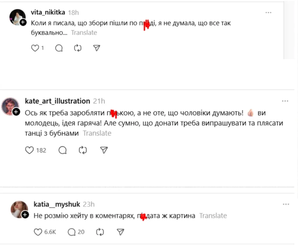 У соцмережах реакція на діяльність блогерки доволі різна: багато коментарів хвалять її за креативність і підтримку армії, але є і чимало критикив, які вважають такі творчі ідеї надмірно провокативними або непристойними.