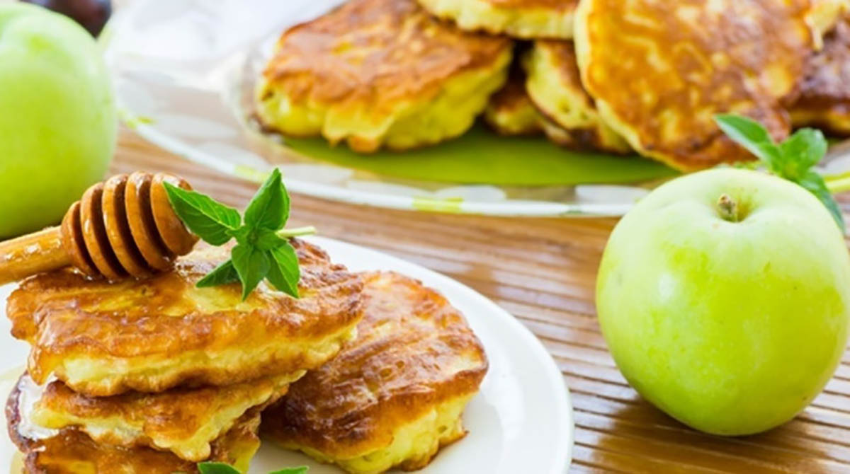 - Подаємо оладки з яблуками з медом, сметаною, улюбленим варенням чи сиропом.