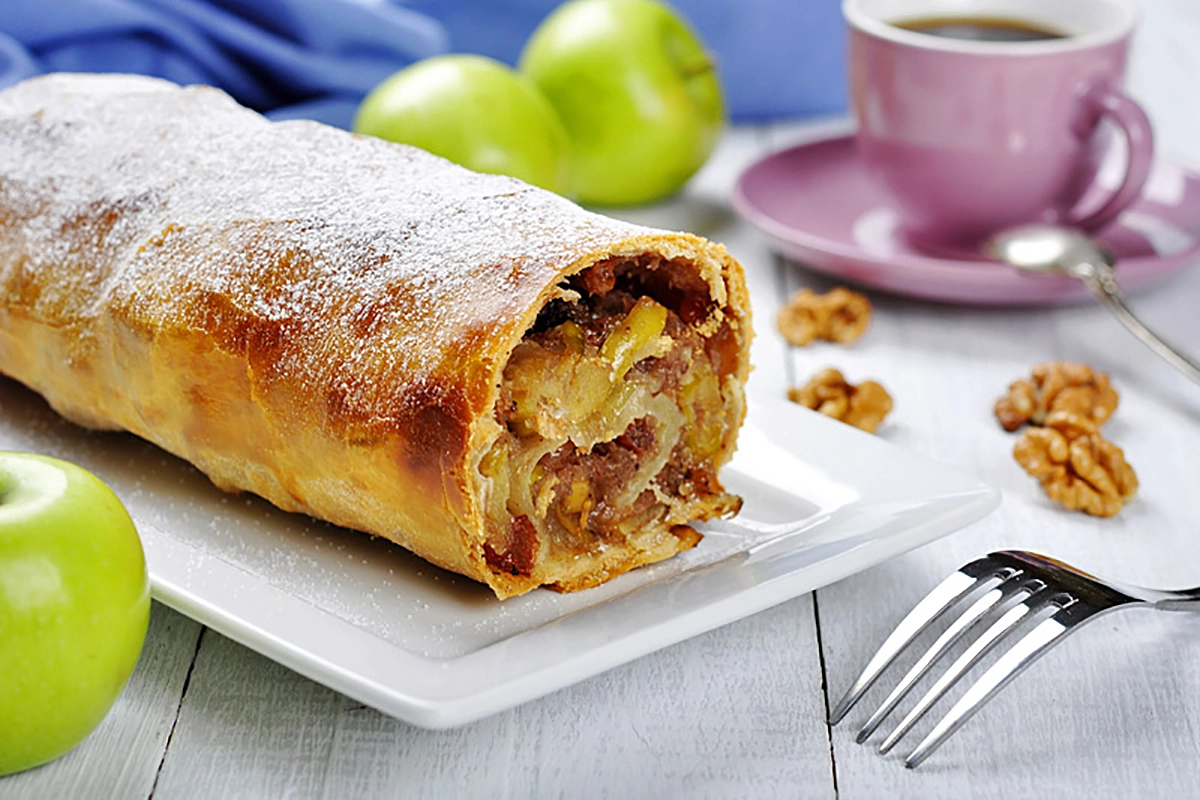 Яблучний штрудель з горіхами – це чарівне поєднання солодкого і хрусткого в одному смачному десерті. Ця страва має довгу історію, що налічує сотні років, і вона завжди вражала своїм багатством смаків та ароматів. Яблука, з яких готується начинка, надають штруделю ніжний солодкий смак, тоді як горіхи приносять в нього незабутній хрусткість і додаткову глибину смаку.