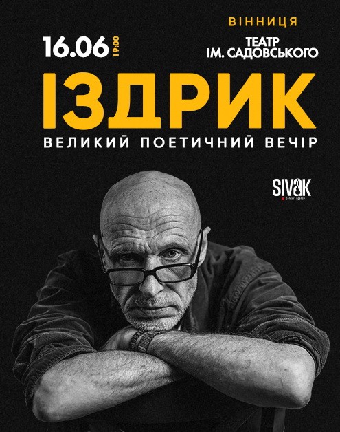Квитки на незабутній вечір-концерт (від 290 грн) купуйте за цим посиланням https://afisha.vn.ua/events/izdryk-velykyy-poetychnyy-vechir