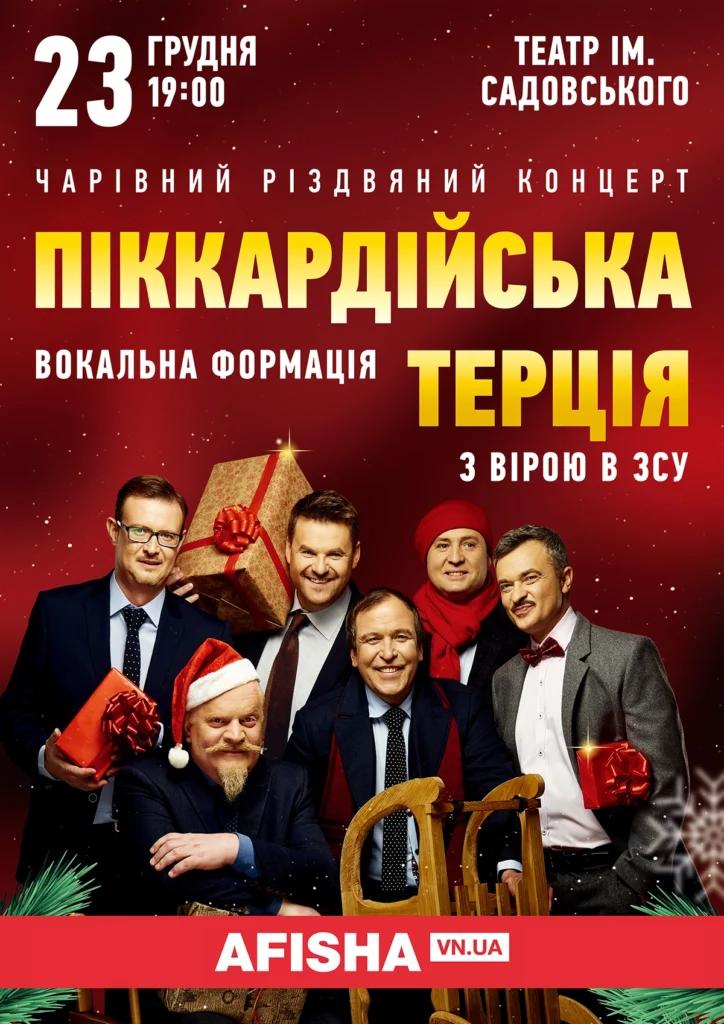 Приходьте за незабутніми враженнями 23 грудня о 19.00 у театр імені Садовського на «Чарівний Різдвяний концерт» легендарної «Піккардійської Терції»!
