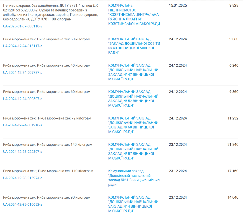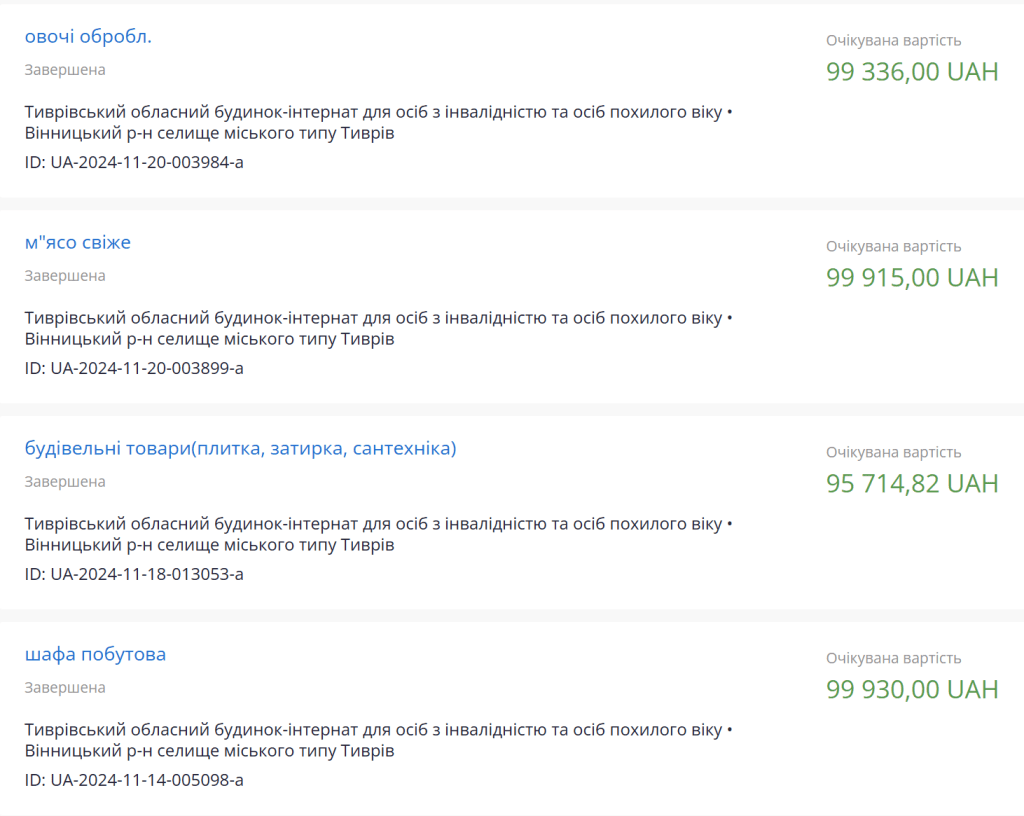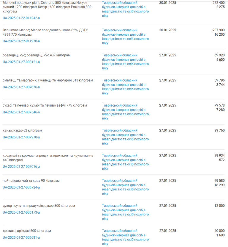 З січня 2025 року серед закупівель Тиврівського інтернату, а саме в продуктовій частині королевою балу стала ФОП Ворона Ірила Леонідівна.