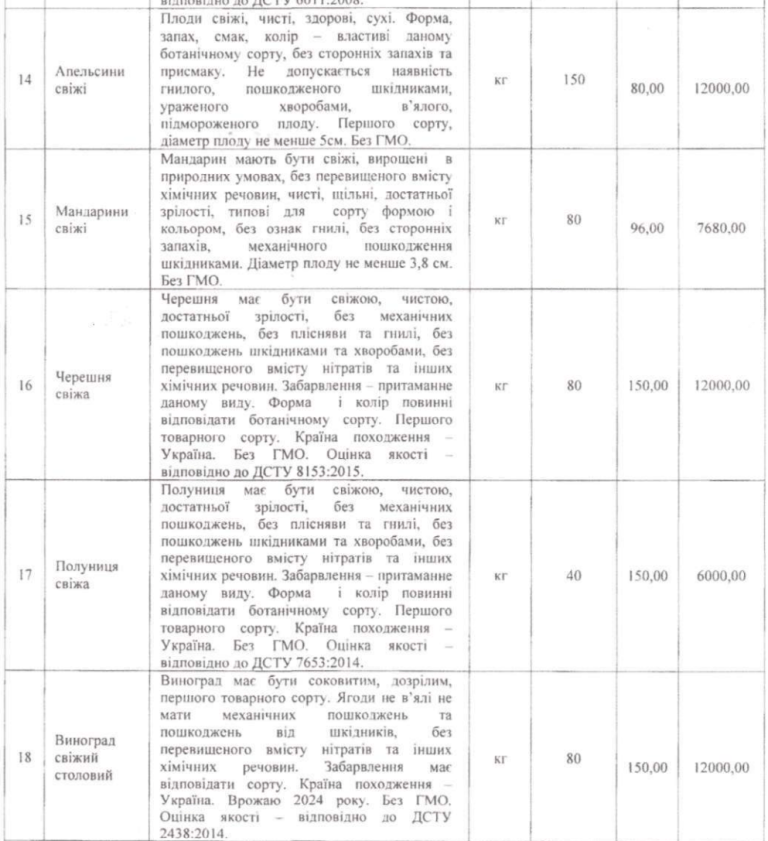 Сюди увійшло: 7,5 тон борошна «вищого сорту»; 6,5 тон борошна «першого сорту»; 350 кг рису та ще від 150 до 350 кг інших круп. І ціни там цікаві. Наприклад, за «крупу рисову» ФОП Ворона запросила 80 грн/кг при середній ціні в 54,33 грн/кг. За борошно «вищого сорту» 22,90 грн/кг, а за «першого» — 22,60 грн/кг. При цьому навіть вищий гатунок у середньому коштував не дорожче 21 грн/кг (отак по гривеньці маємо мінімум 13 тисяч різниці). Крупа ячмінна закуплялась по 26,30 грн/кг, а середня ціна в січні на ячні крупи була в районі 20 грн/кг. І так далі. Назбирається тисячі й тисячі гривень різниці і запитання – якщо все куплялось дорожче за середню ціну, то не простіше було б піти в магазин і це все придбати? Навіщо ця Ворона тоді?