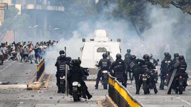 У столиці Венесуели протести були здебільшого мирними, потім напруга почала зростати. Тисячі протестувальників пішли пішки – деякі за багато кілометрів – у центр і до президентського палацу. На вулицях палять автомобілі, покришки та сміття. Почалися сутички між протестувальниками та озброєною поліцією. Деякі протестувальники намагалися заблокувати автомагістралі, в тому числі ту, яка з’єднує столицю з портовим містом, де знаходиться головний міжнародний аеропорт країни.