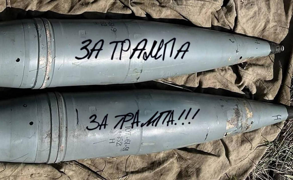 Одночасно почали з’являтися світлини снарядів з написами «За Трампа!» або «За вухо Трампа!». Начебто так у зоні бойових дій путінські окупанти почали підписувати снаряди, яким стирають з лиця землі українські міста і села.
