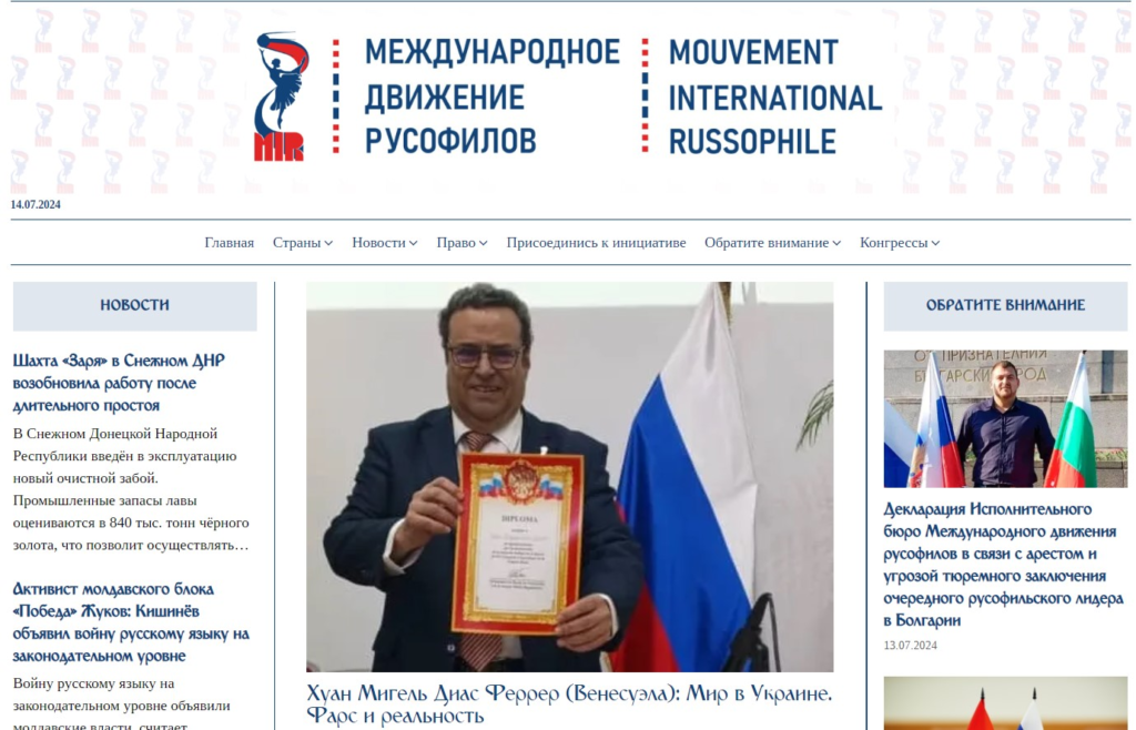 Генеральний секретар «Міжнародного руху русофілів» – болгарський політик Микола Малинов. Нещодавно в Болгарії місцевими спецслужбами був затриманий один із лідерів болгарського руху «Русофіли» – за підривну діяльність.