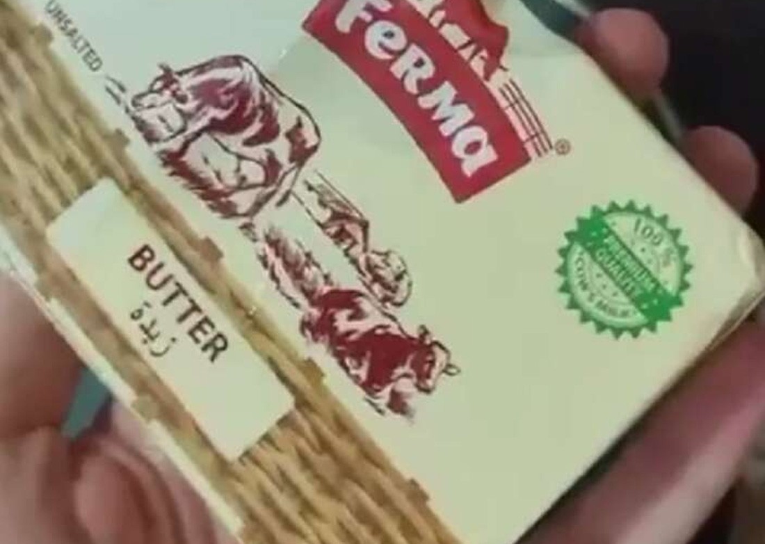 На відео з TikTok, на етикетці упаковки масла «Ferma» назва бренду зазначена англійською мовою. Про українське виробництво говорить надпис «Made in Ukraine». Тобто масло виготовлене в Україні для арабських країн.