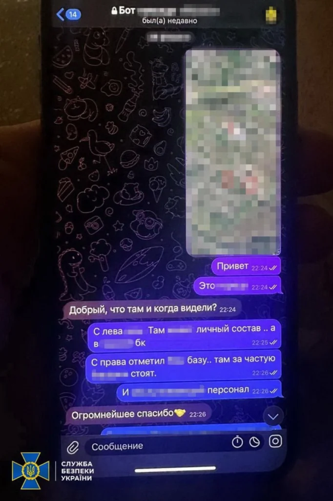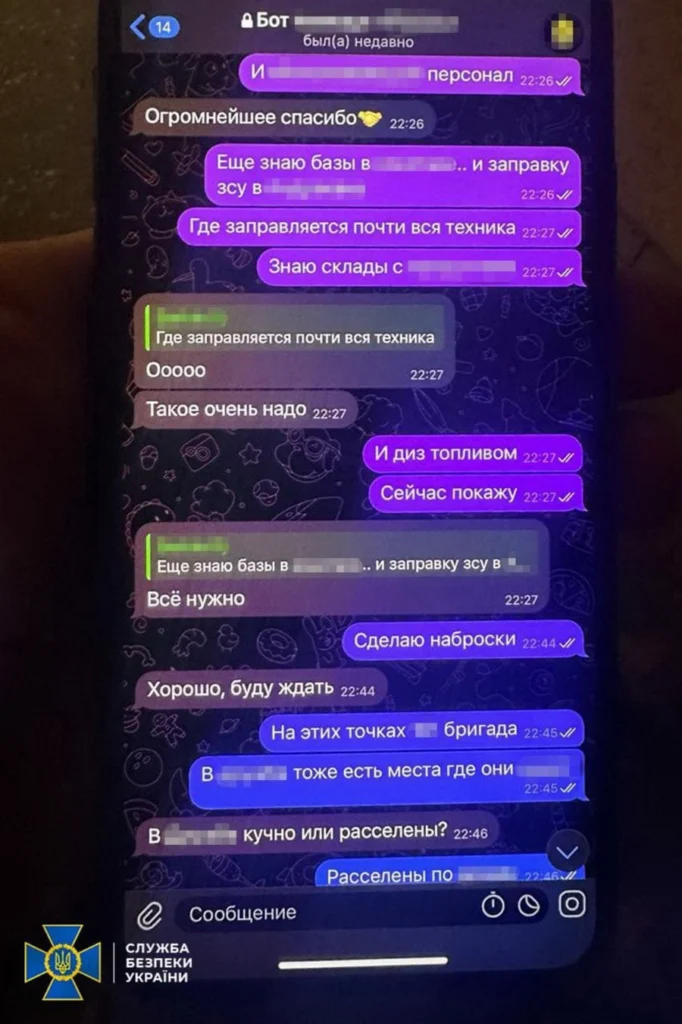 Розвідувальну інформацію він передавав у ворожий чат-бот, який адмініструють представники воєнної розвідки рф.