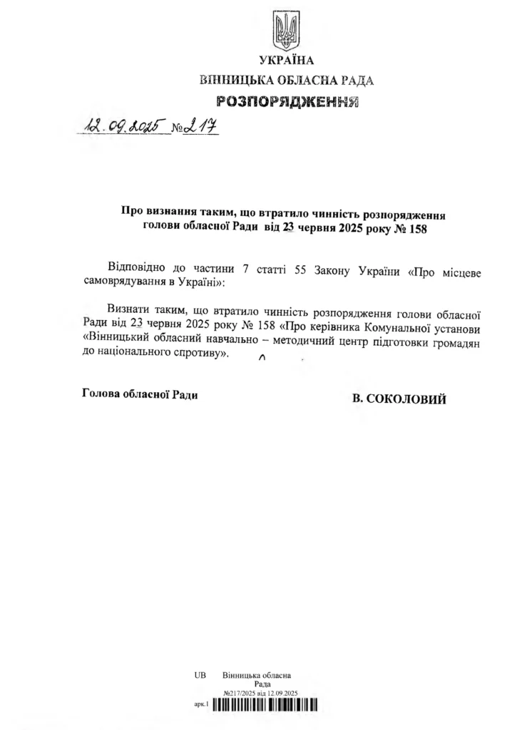 Найяскравішим уособленням абсурдності й відверто злочинної кадрової політики «стратега» Соколового стала історія з «Вінницьким обласним навчально-методичним центром підготовки громадян до національного спротиву».