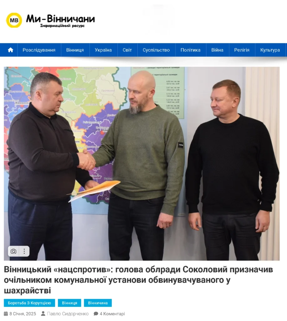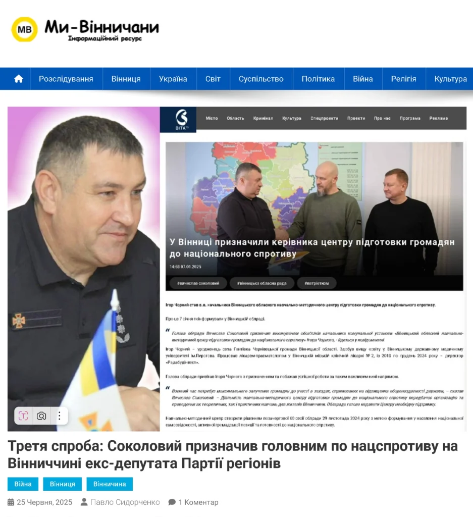 Як вже повідомляли «Ми Вінничани», першим керівником центру за розпорядженням Соколового від 7 січня 2025 року став Ігор Чорний. На той момент він уже фігурував у кримінальній справі за шахрайство та мав статус обвинуваченого в іншій, яка перебувала на розгляді суду.