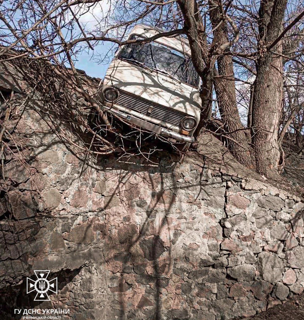 Рятувальникам повідомили, що водій автомобіля «ВАЗ» з’їхав з проїжджої частини дороги в кювет, де автівка застрягла зачепившись за дерево та нависла над прірвою. Повідомляє Головне управління ДСНС України у Вінницькій області.