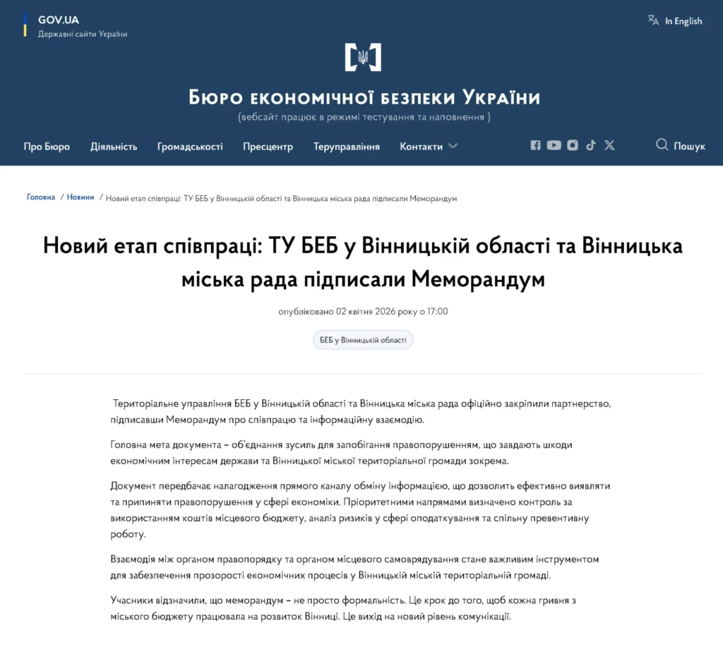 У Вінниці, схоже, розпочався новий етап взаєморозуміння між владою та силовими структурами. Якщо раніше дехто вважав, що меморандуми існують переважно для урочистих фото та гучних пресрелізів, то Територіальне управління Бюро економічної безпеки (БЕБ) і Вінницька міська рада вирішили продемонструвати протилежне, підписавши черговий такий документ.