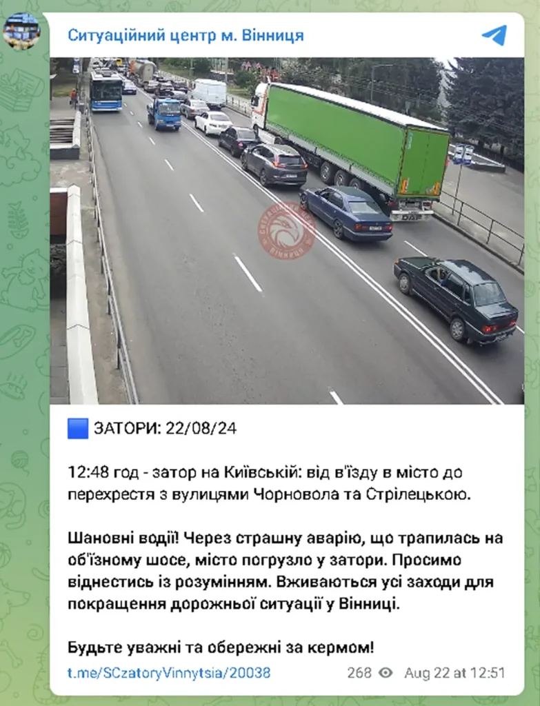 «Просимо віднестись із розумінням. Вживаються усі заходи для покращення дорожньої ситуації у Вінниці», – йдеться у повідомленні ситуаційного центру.