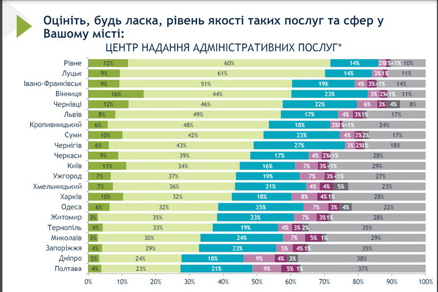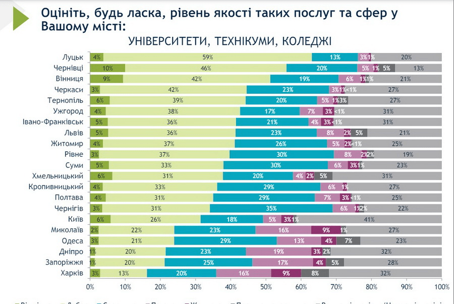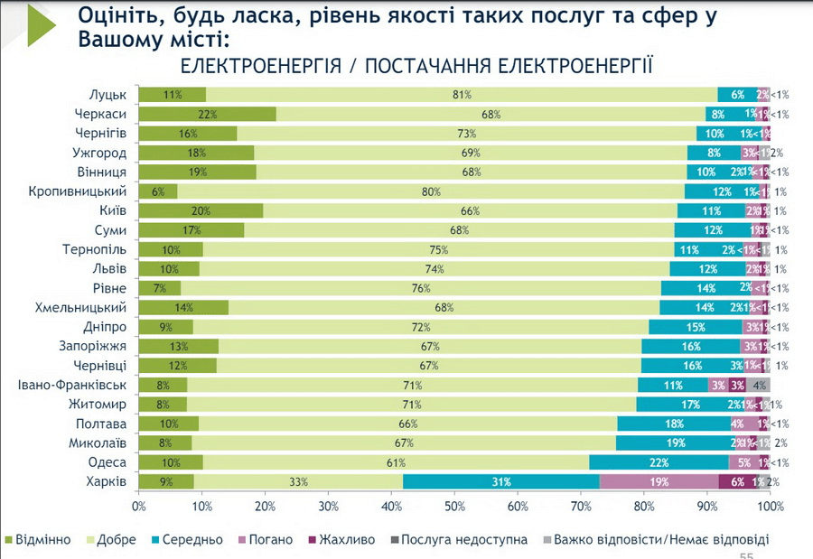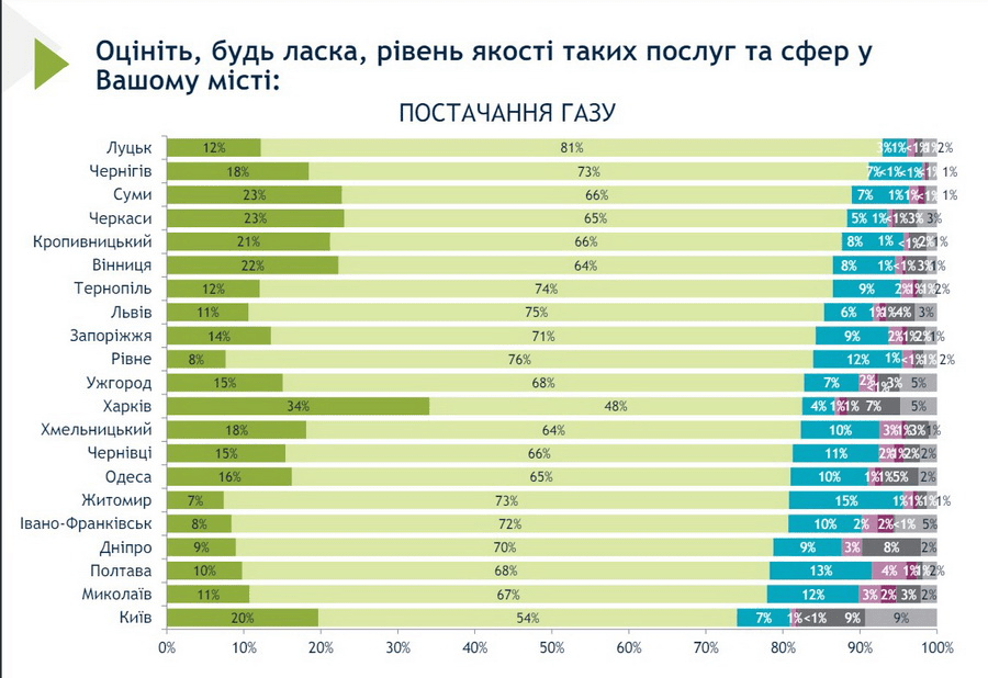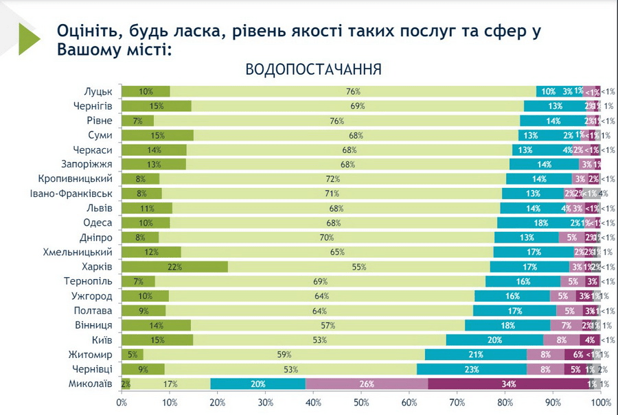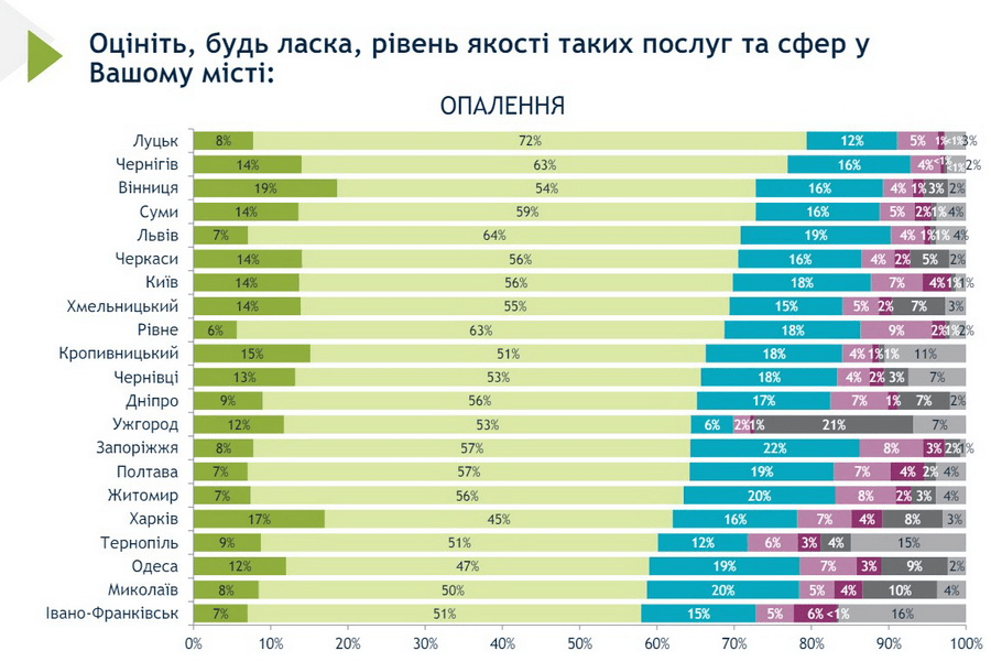 Якість водопостачання позитивно оцінили 61% вінничан (до речі, це лише 15 результат серед обласних центрів). Зате за якістю опалення Вінниця стала третьою (73%).