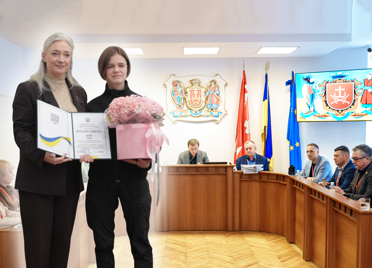 Як зазначила начальниця Вінницької ОВА Наталя Заболотна, Вінницька громада пишається вчинком 18-річної Каріни Олєйнік. Студентка третього курсу Вінницького медичного коледжу, майбутня фельдшерка, опинилася в епіцентрі подій під час ворожої дронової атаки 24 березня. Попри небезпеку, дівчина не залишила місце події та кинулася на допомогу постраждалим.