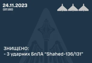 У Повітряних силах також наголосили, що щонайменше вісім ворожих безпілотників перетнули державний кордон у напрямку Польщі.